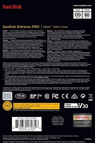 Cartão SanDisk 256GB Extreme PRO SDXC UHS-I – C10, U3, V30, 4K UHD, cartão SD – SDSDXXY-256G-GN4IN